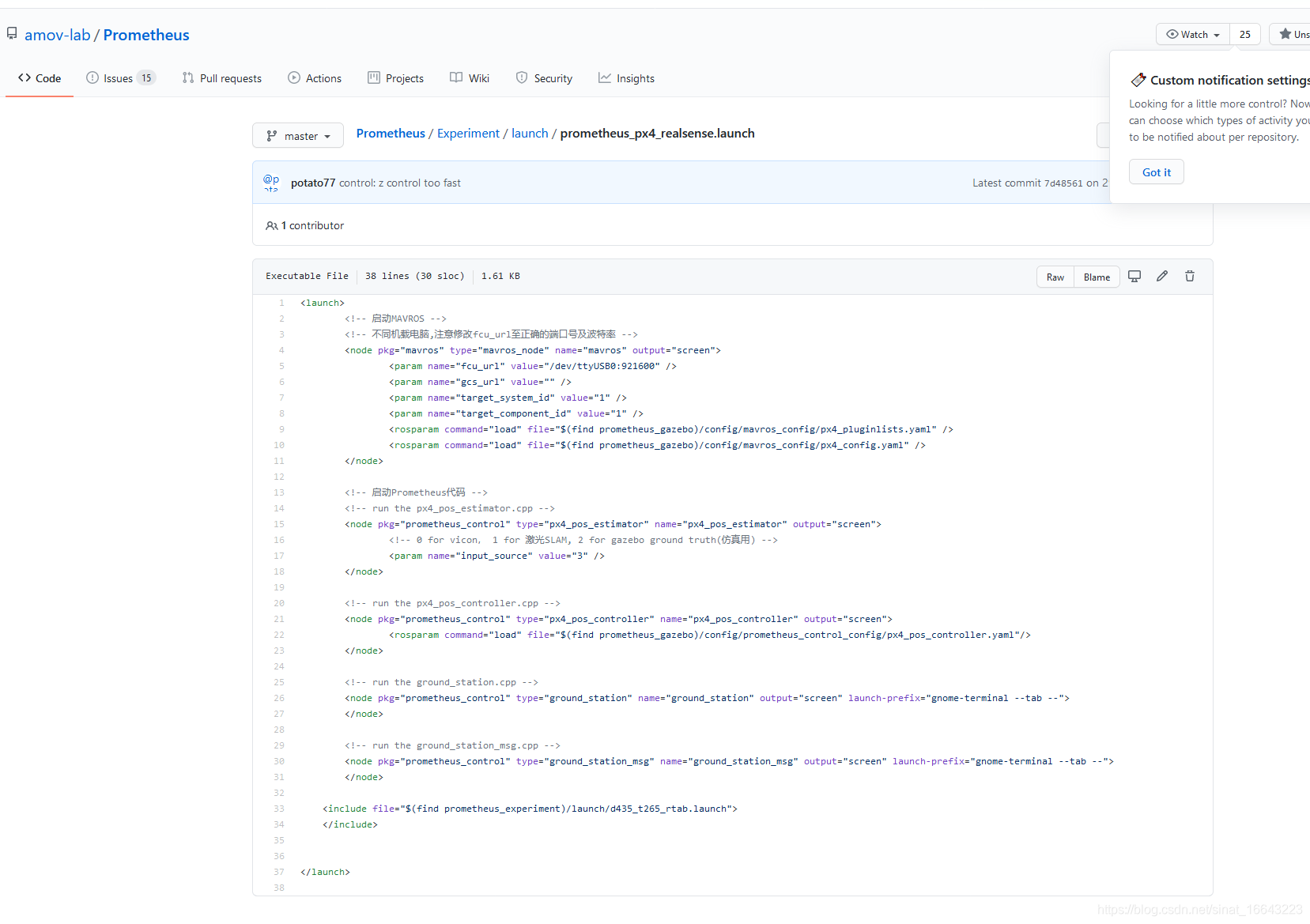 https://github.com/amov-lab/Prometheus/blob/master/Experiment/launch/prometheus_px4_realsense.launch
