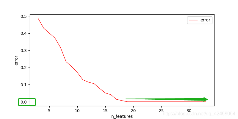 可以发现,从20开始就飘红了,追溯代码,可能是聚类中心点个数设置太大了,n_features达到20时error已经等于0,后面的也就无需设置太多中心点。