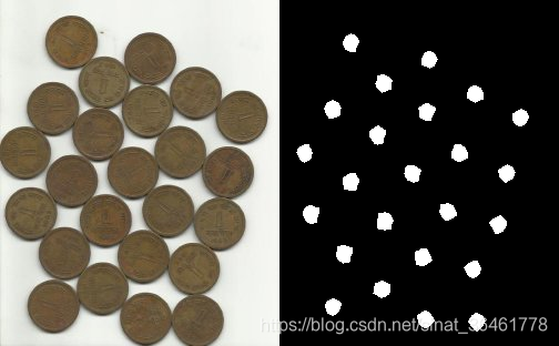 cv.threshold(distTrans, coinsFg, 0.7 * 1, 255, cv.THRESH_BINARY);coinsFg.convertTo(coinsFg, cv.CV_8U, 1, 0);