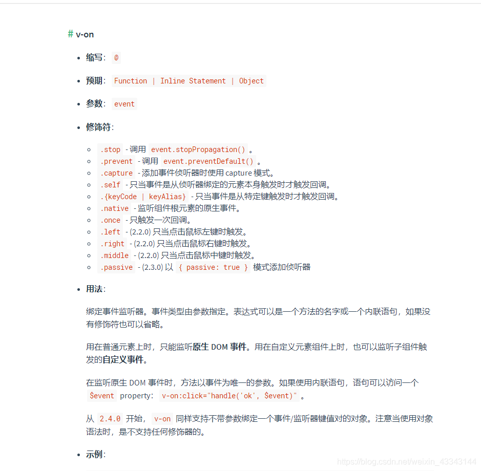 参考 Vue官方文档:https://cn.vuejs.org/v2/api/?#%E5%AE%9E%E4%BE%8B%E6%96%B9%E6%B3%95-%E4%BA%8B%E4%BB%B6