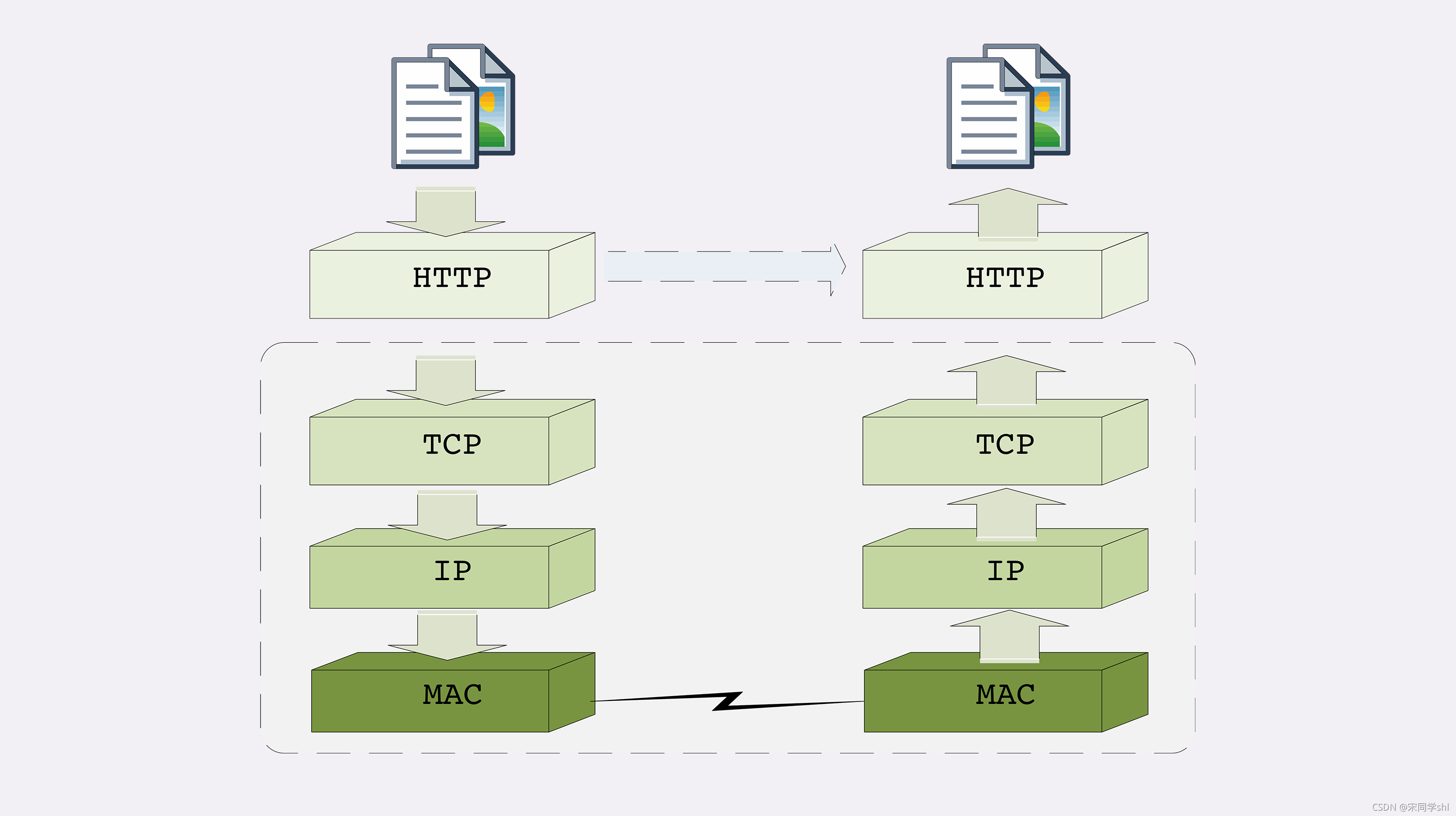 但下层的传输过程对于上层是完全“透明”的,上层也不需要关心下层的具体实现细节,所以就 HTTP 层次来看,它不管下层是不是 TCP/IP 协议,看到的只是一个可靠的传输链路,只要把数据加上自己的头,对方就能原样收到。