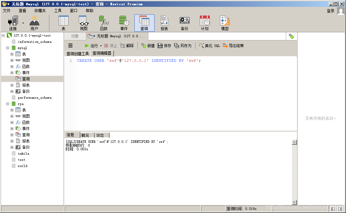 CREATE USER 'zwf'@'127.0.0.1' IDENTIFIED BY 'zwf';