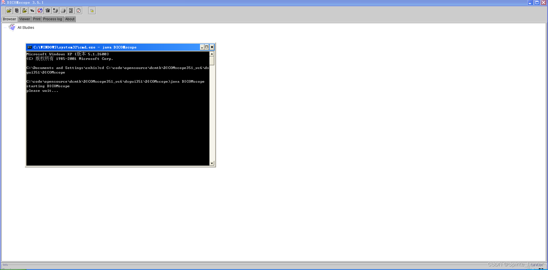 5. 打开命令行,进入到tkgui目录下,执行:javac -d ..\DICOMscope DICOMscope.java,编译java代码,注意要事先安装好jdk 1.3并配置好环境变量。