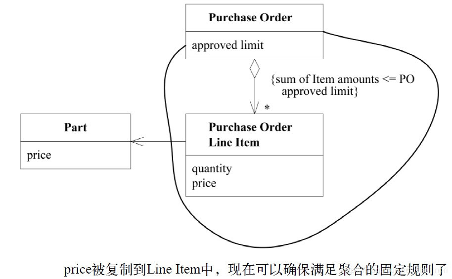 AGGREGATE强制了PO与采购项之间符合业务实际的所属关系。PO和采购项的创建及删除很自然地被联系在一起,而Part的创建和删除却是独立的。