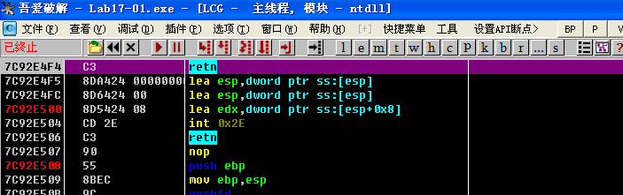 使用ida载入实验文件Lab17-03.exe,然后利用Python脚本找到x86漏洞指令,