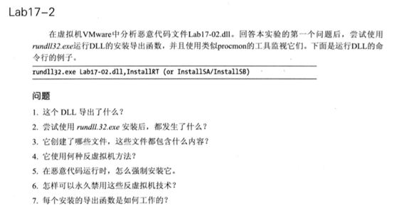 本文主要是介绍恶意代码分析实战 第十七章课后实验,希望对大家解决编程问题提供一定的参考价值,需要的开发者们随着小编来一起学习吧!