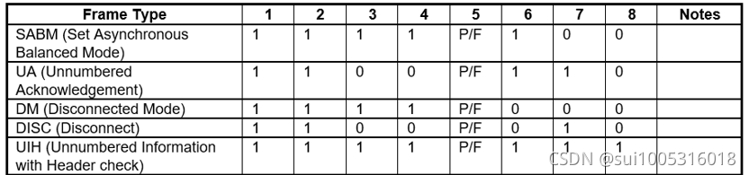7、RFCOMM支持的GSM 07.10的frame types有5种: