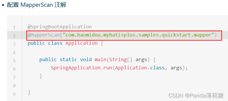 @MapperScan("com.baomidou.mybatisplus.samples.quickstart.mapper")