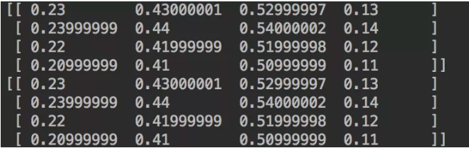 with tf.Session() as sess:sess.run(tf.global_variables_initializer())embedding1,embedding2 = sess.run([get_embedding1,get_embedding2])print(embedding1)print(embedding2)