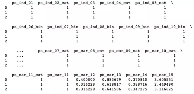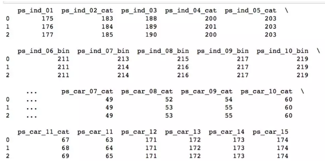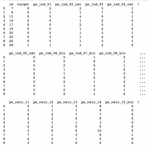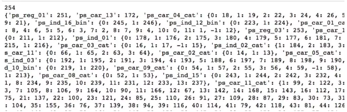 ]IGNORE_COLS = ["id", "target","ps_calc_01", "ps_calc_02", "ps_calc_03", "ps_calc_04","ps_calc_05", "ps_calc_06", "ps_calc_07", "ps_calc_08","ps_calc_09", "ps_calc_10", "ps_calc_11", "ps_calc_12","ps_calc_13", "ps_calc_14","ps_calc_15_bin", "ps_calc_16_bin", "ps_calc_17_bin","ps_calc_18_bin", "ps_calc_19_bin", "ps_calc_20_bin"