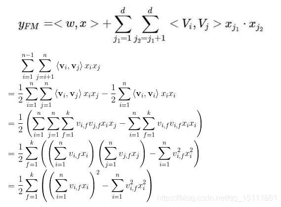 我们先来回顾一下FM的公式,以及二次项的化简过程: