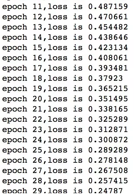 with tf.Session() as sess:sess.run(tf.global_variables_initializer())for i in range(100):epoch_loss,_ = sess.run([loss,optimizer],feed_dict={feat_index:train_feature_index,feat_value:train_feature_value,label:train_y})print("epoch %s,loss is %s" % (str(i),str(epoch_loss)))
