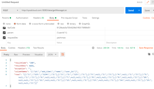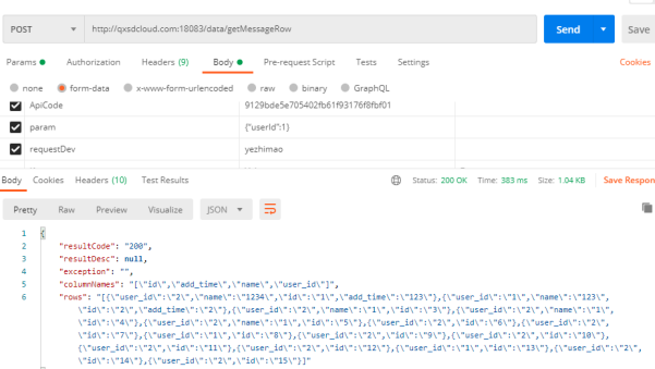 | 2 | Map | http://qxsdcloud.com:18083/data/getMessageRow | 以键值对的形式返回 |