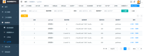 在菜单“数据服务—api日志”菜单中,可以查看到请求的日志明细,可根据日志来分析: