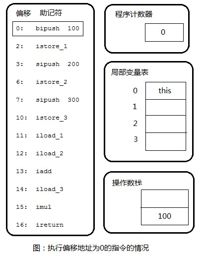 第三步:将局部变量表中的100复制到操作数栈顶。