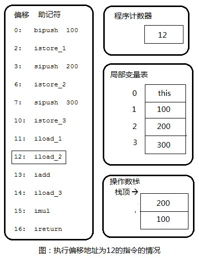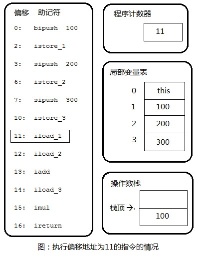 第二步:将操作栈中的100出栈并存放到局部变量中。后面的200,300同理。