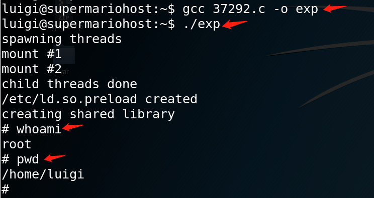 编译该C语言脚本并执行,成功拿到 root 权限。