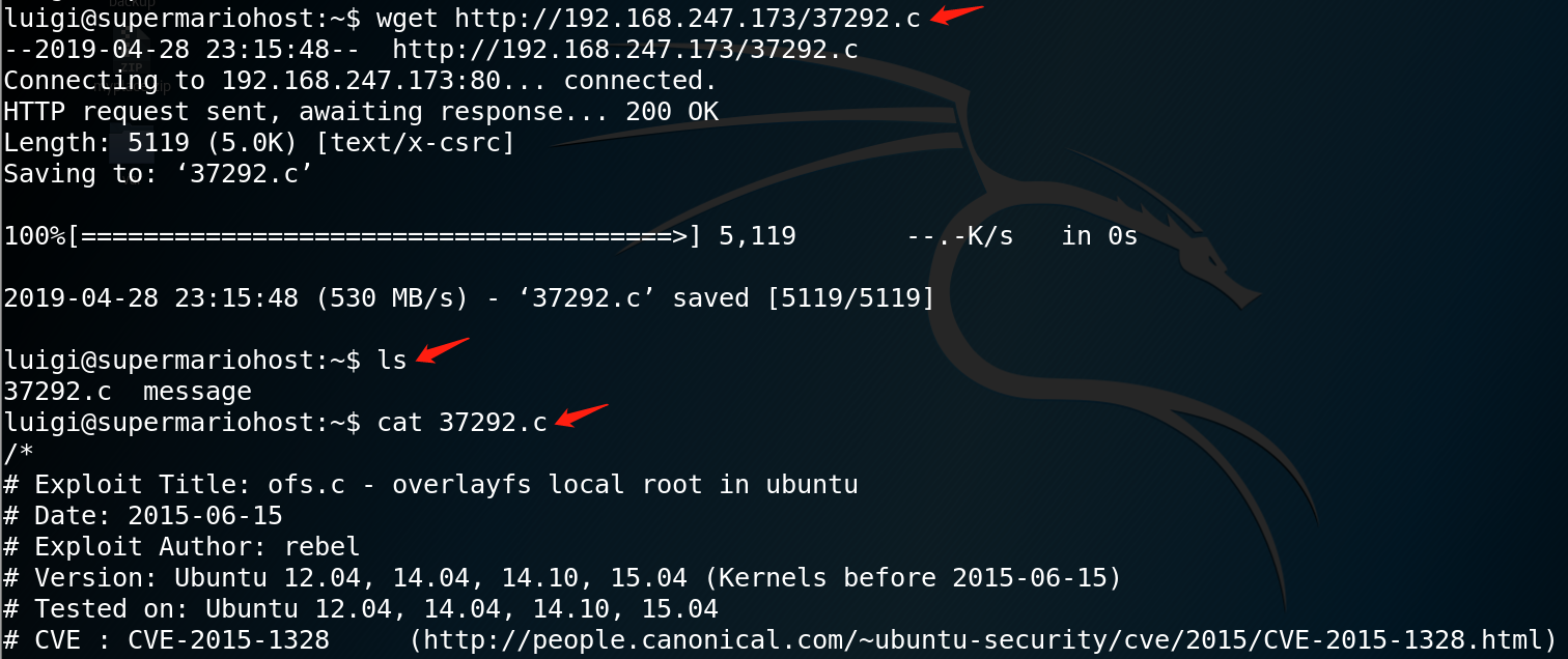 发现多个提权程序,本次使用 ' /usr/share/exploitdb/exploits/linux/local/37292.c ' 该漏洞继续提权工作。
