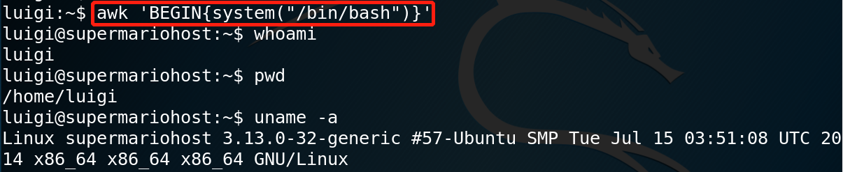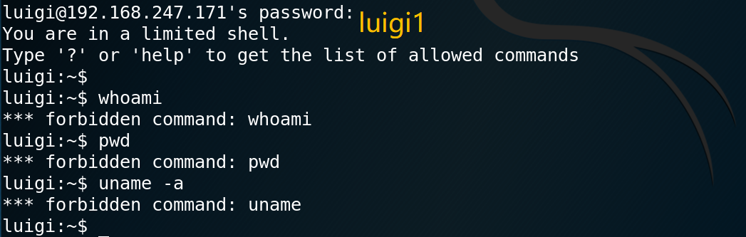 得出ssh的登录用户名为:luigi,密码为:luigi1。接下来肯定就是登录ssh了。