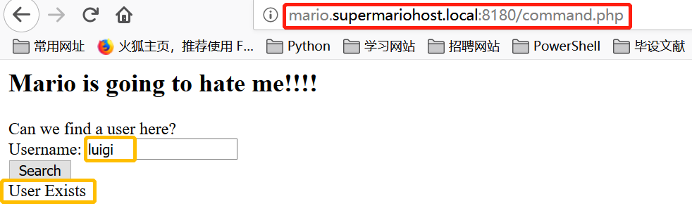 生成用户名字典后,可访问 ' http://mario.supermariohost.local:8180/command.php ' ,对用户名进行检验,将不存在的用户名删除掉,这样可以缩短暴力破解的时间。然后根据修改后的用户名字典user.txt生成相对应的密码字典passwd.txt。