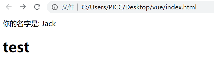 <html><head><title>chapter1</title></head><body> <div id="app"><span>你的名字是: {{name}}</span></div><h1>test</h1><script src="lib/vue.js"></script><script src="js/main.js"></script></body>