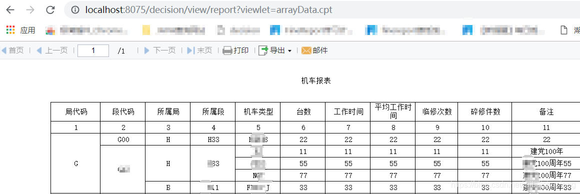 9、保存该cpt文件,然后创建另一个springboot项目,该项目的主要功能是读取数据库中的数据,在此就不在赘述了,然后启动该springboot项目,再启动tomcat部署的帆软的项目,便可以直接展示我们的数据了,如下图所示: