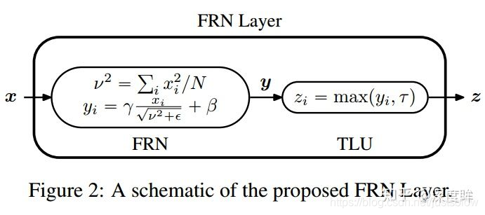 要解决batch依赖问题,则不能对batch维度进行归一化。FRN层由两部分组成,Filtere Response Normalization (FRN)和Thresholded Linear Unit (TLU)。