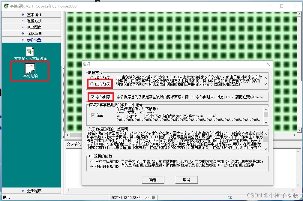 要使用以下两个显示文字函数需对液晶取模工具进行设置