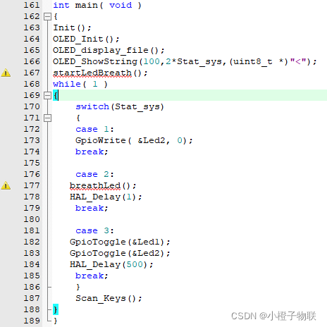 GpioToggle(&Led1); //翻转LED1引脚的输出电平