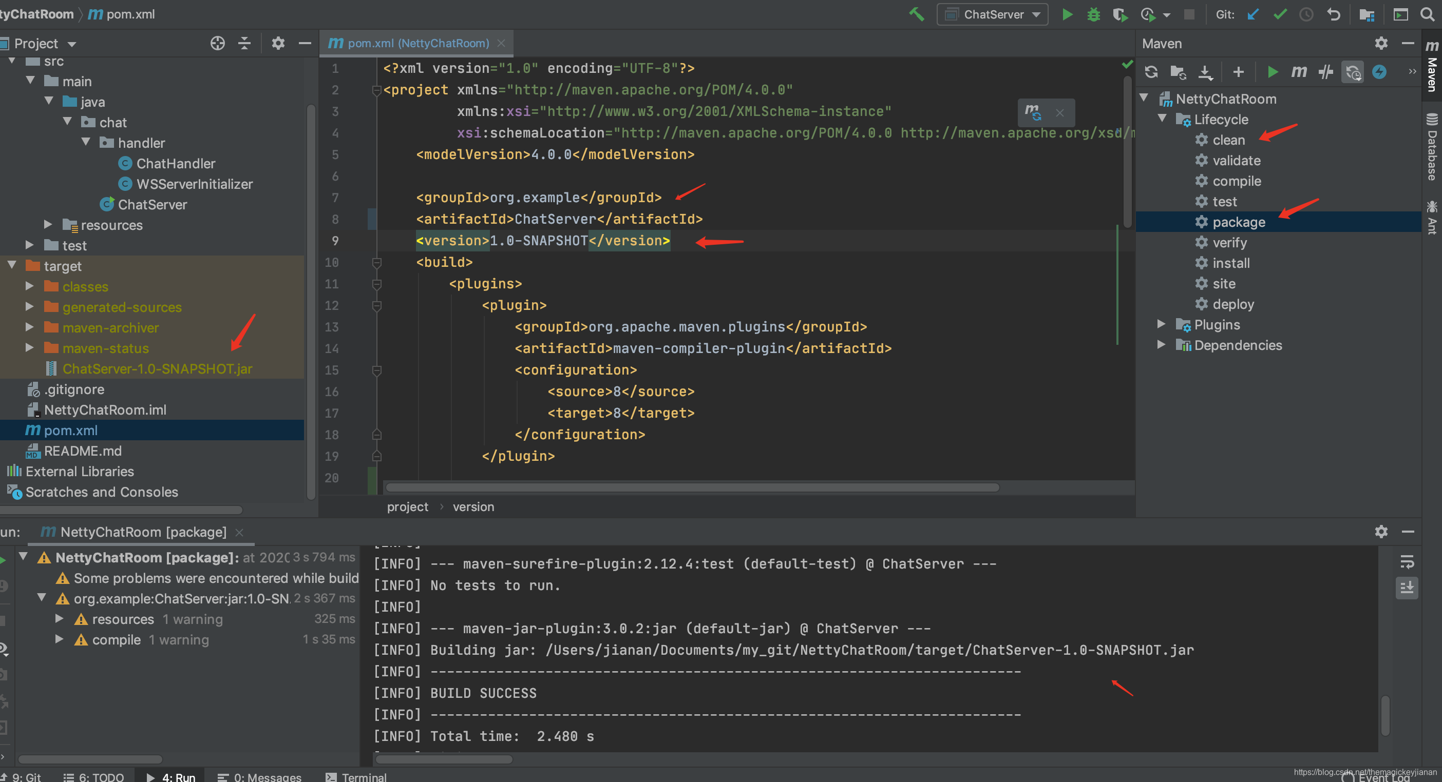 清理上次打包结果: Lifecycle下点击clean(这时发现整个target被删除)