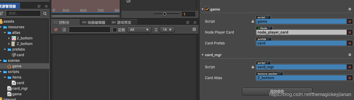 cc.Class({extends: cc.Component,properties: {cardAtlas: cc.SpriteAtlas,},getSprite: function(frameName){return this.cardAtlas.getSpriteFrame(frameName);},// LIFE-CYCLE CALLBACKS:onLoad () {cc.vv.card_mgr = this;},onDestroy: function () {delete cc.vv.card_mgr;}