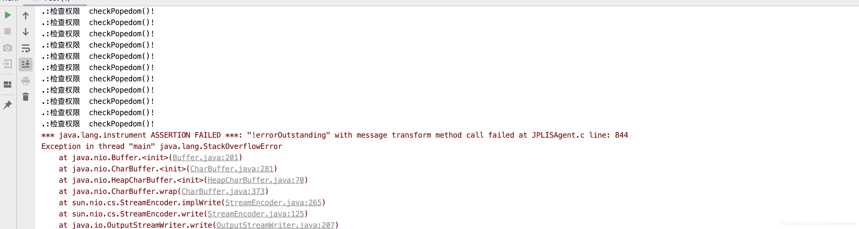 在反复打印检查权限之后,报出了stackoverflow异常。