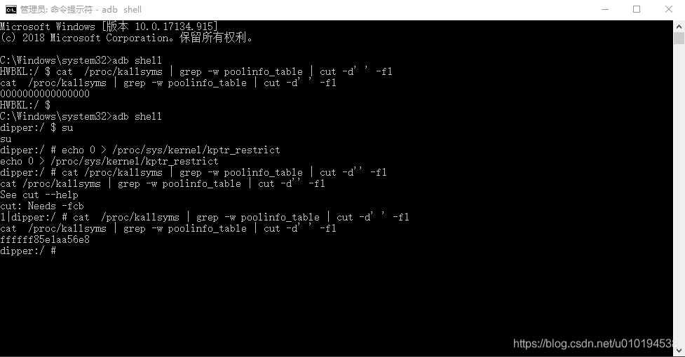 - 连接手机,进入cmd,比如查看kallsyms文件poolinfo_table符号变量地址