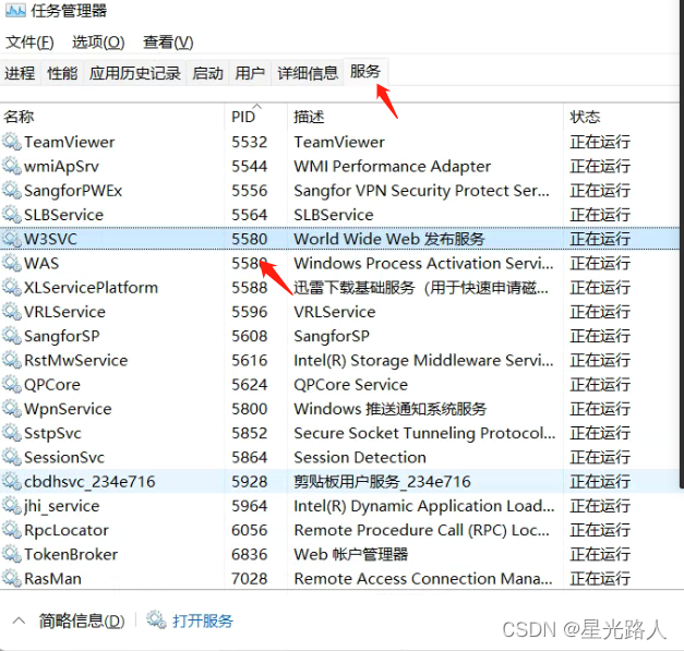 打开任务管理器在服务里找到pid为5580的服务名称,结束掉。