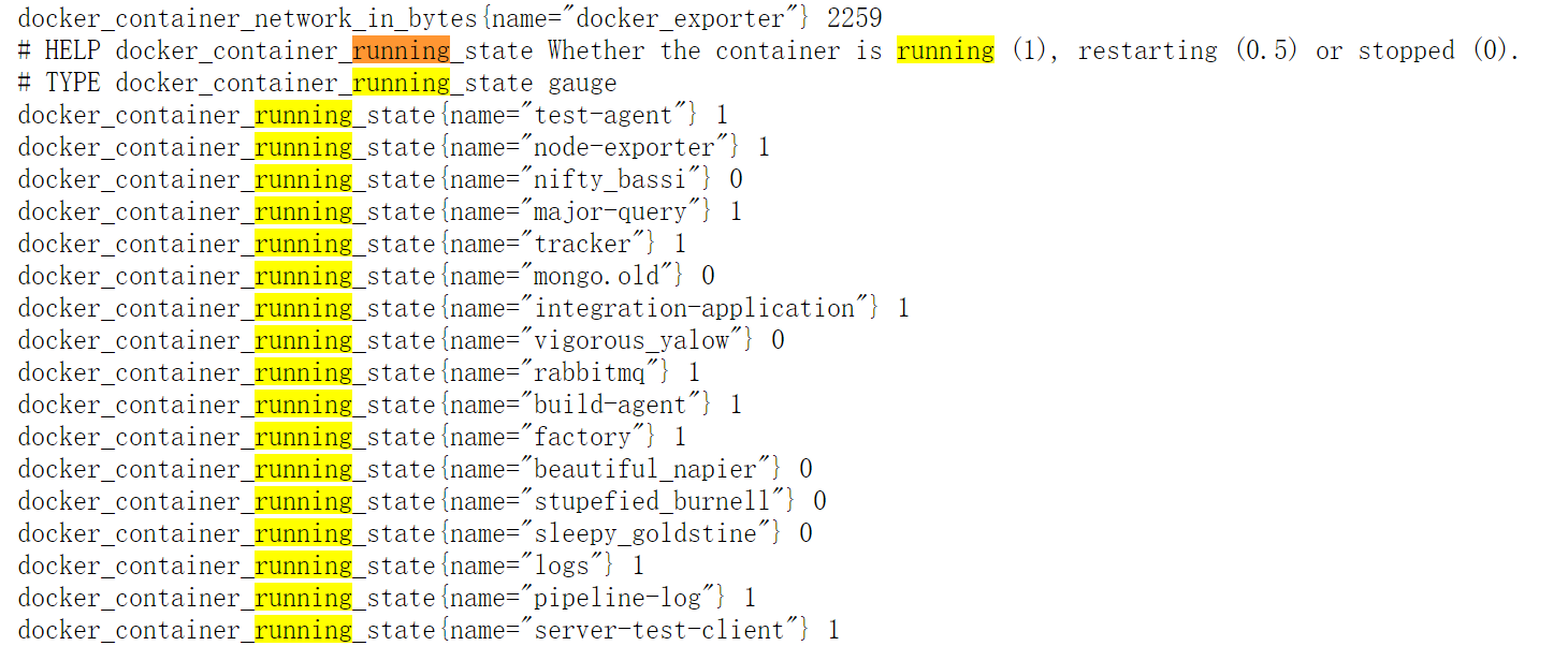 根据docker_exporter可以看到会提供docker_container_running_state这个指标来标记容器是否是running.