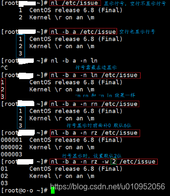 -b:列出行号仅仅针对非空白行显示行号,空白航不显示行号