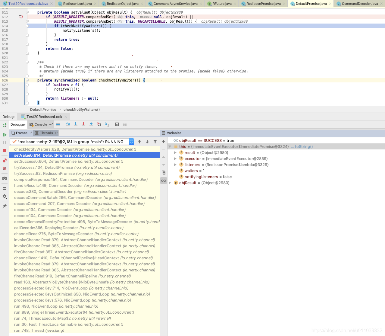 我们来看一下这个 subscribe 的 handler, 这里面的处理是 poll RedissonLockEntry 的 listener 来执行, 我们这里是已经没得下一个 listener 了, 然后 唤醒等待的 semaphore[因此我们这里 main 线程实际上大概是 wait 了 2s]