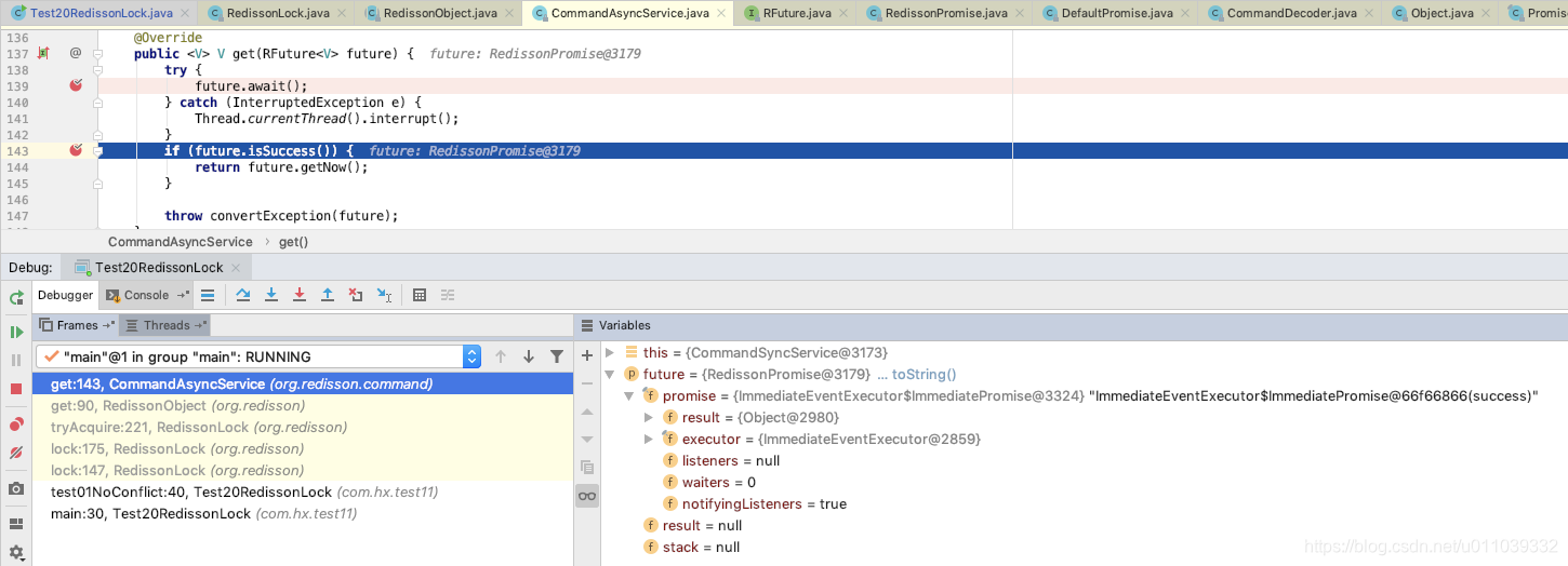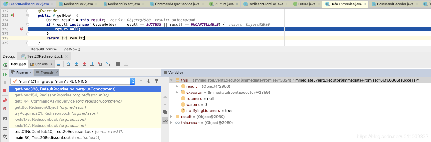 lock 的线程等待 future 执行完成之后, 返回结果, 这里的 result 是一个 Object, 为什么 lock 里面返回的 ttl 是 null ? 我们接着往下看一下 ImmediatePromise. getNow
