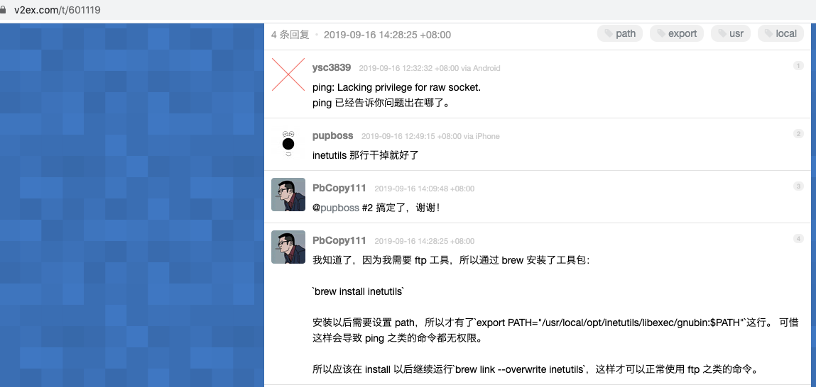 不过这里提到的 干掉 inetutils 这一样的 export, 显然是 不符合期望, 还想使用 ftp 客户端呢, 但是可以解决问题