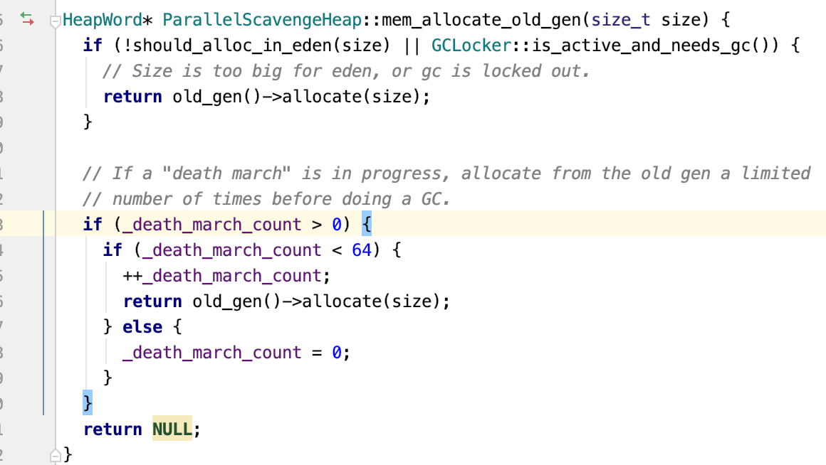 这里的 GCLocker::is_active_and_needs_gc 和 _death_march_count 在这里不满足条件