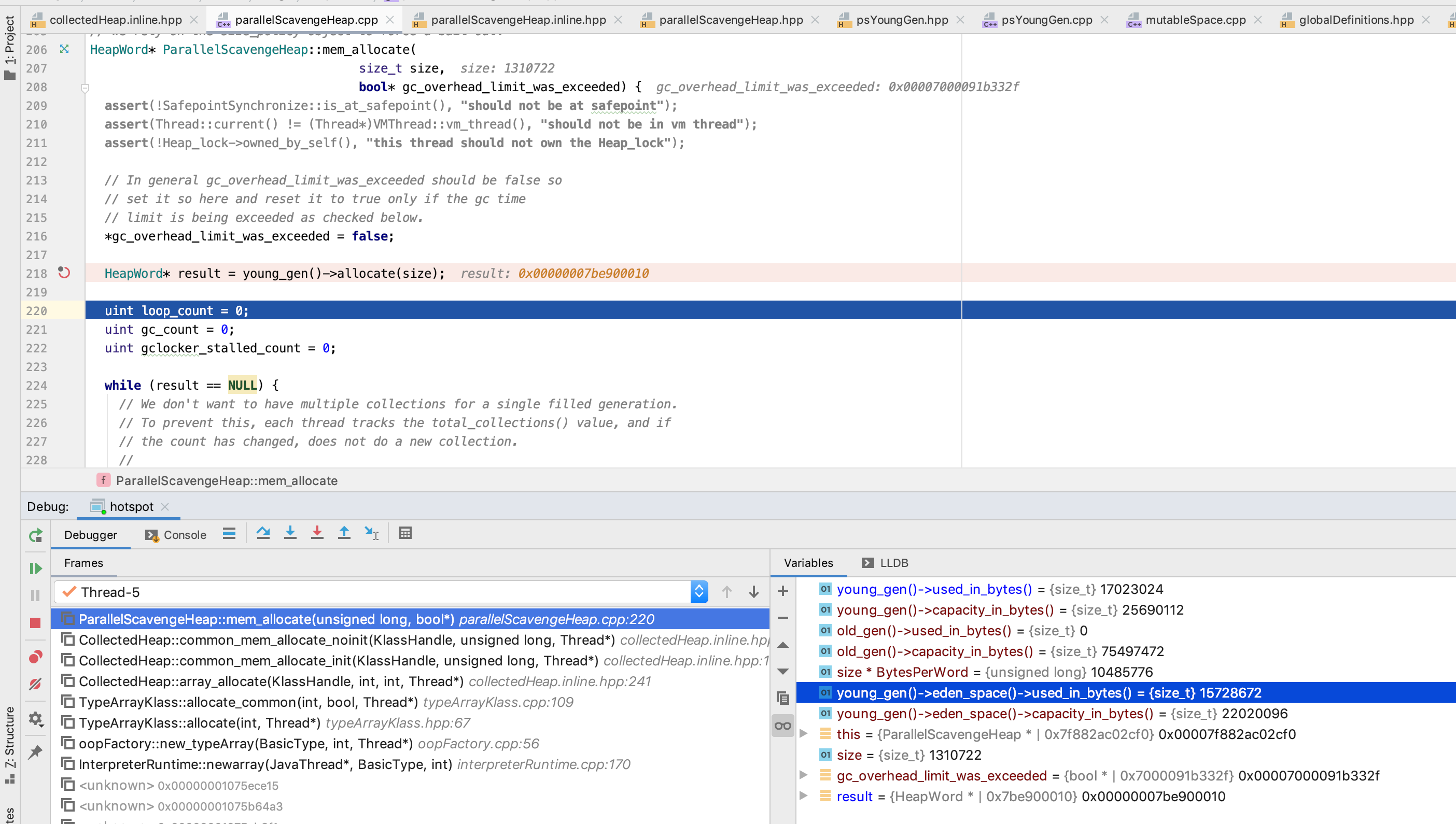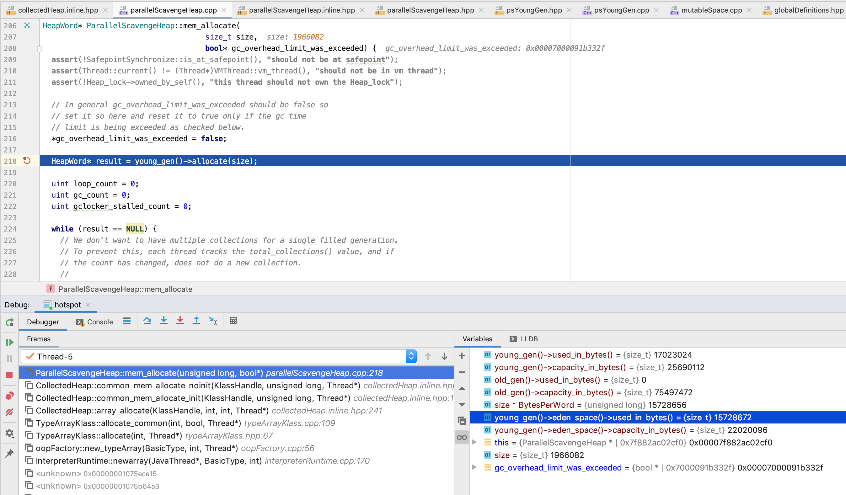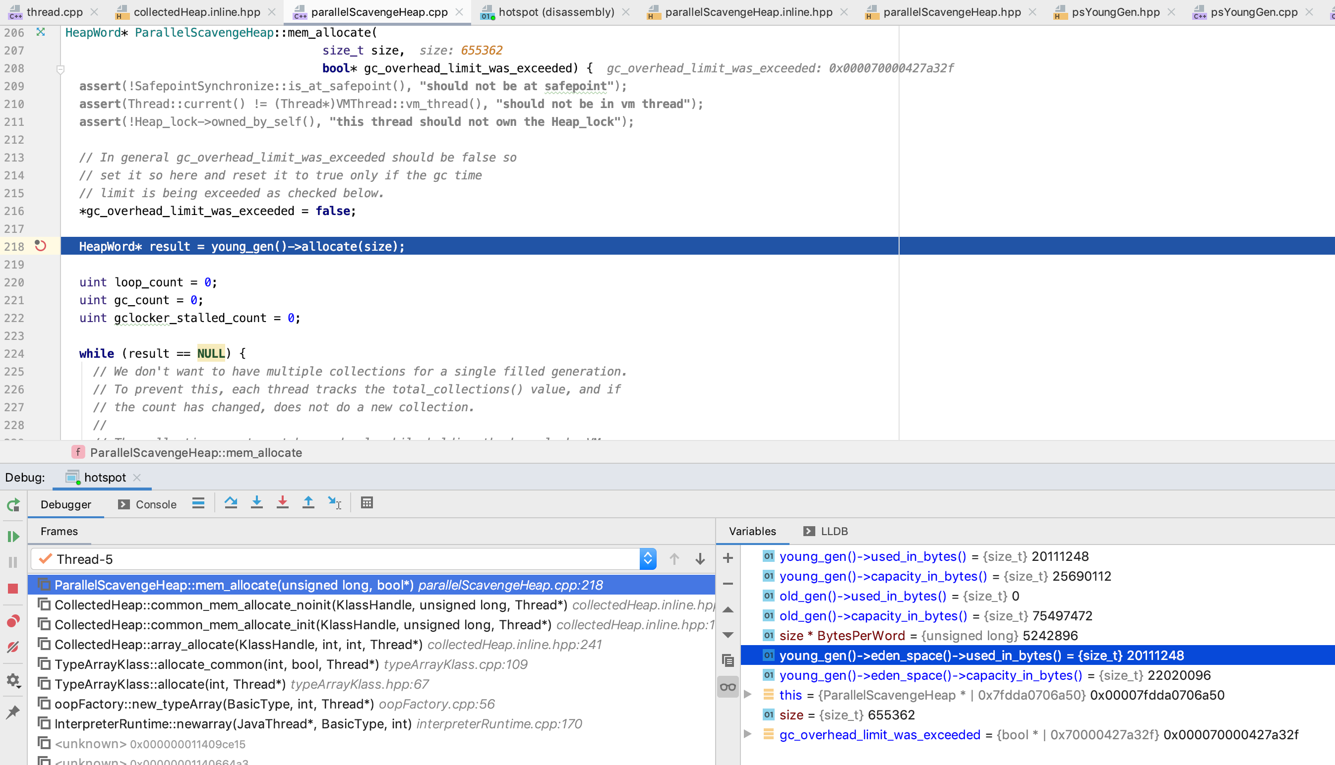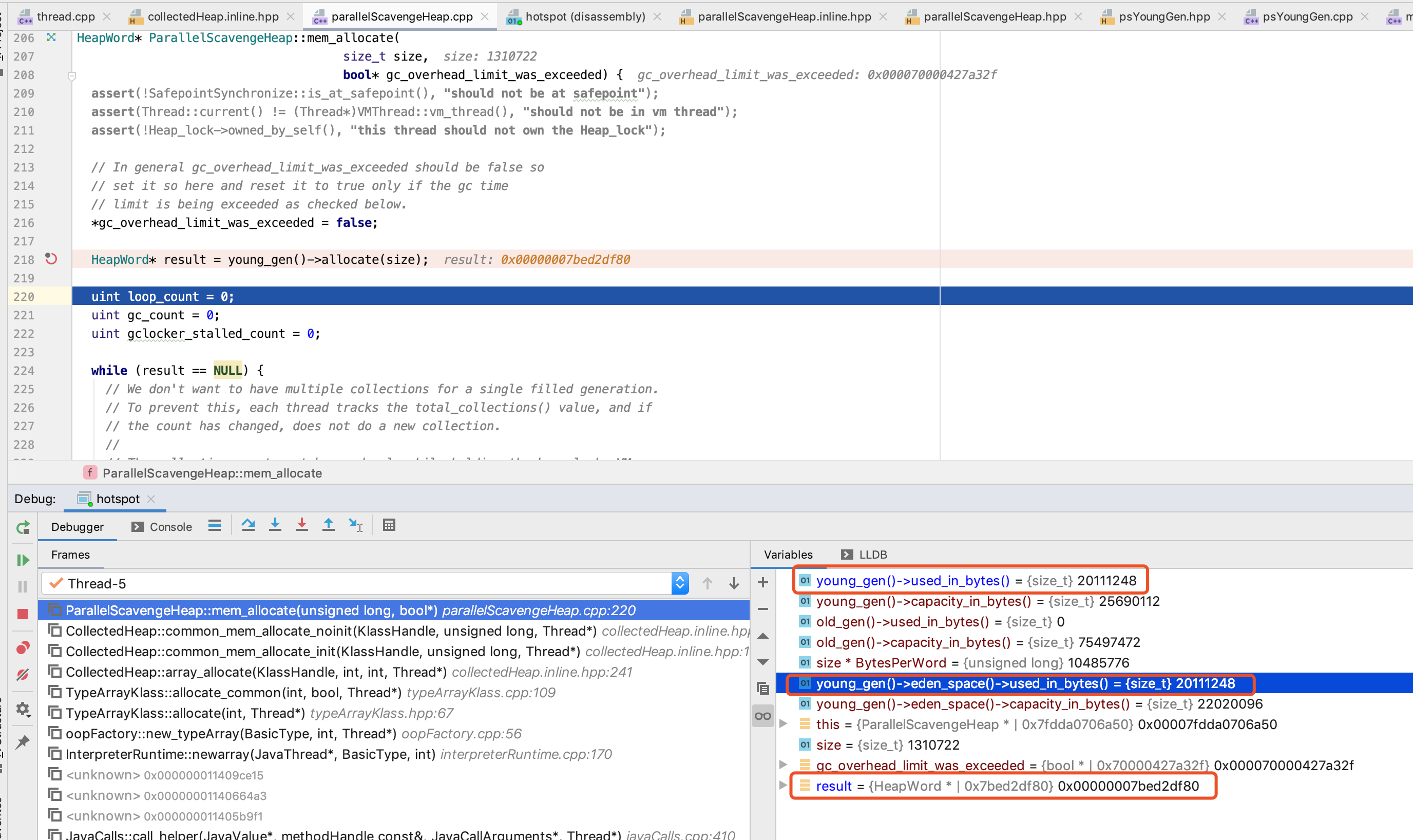 我们这里 size 是 1966082, eden_space.capacity_in_words/2 为 1376256, 是符合 在 old_gen 分配的条件的, 因此 这里第五个 字节数组 就在 old_gen 分配了