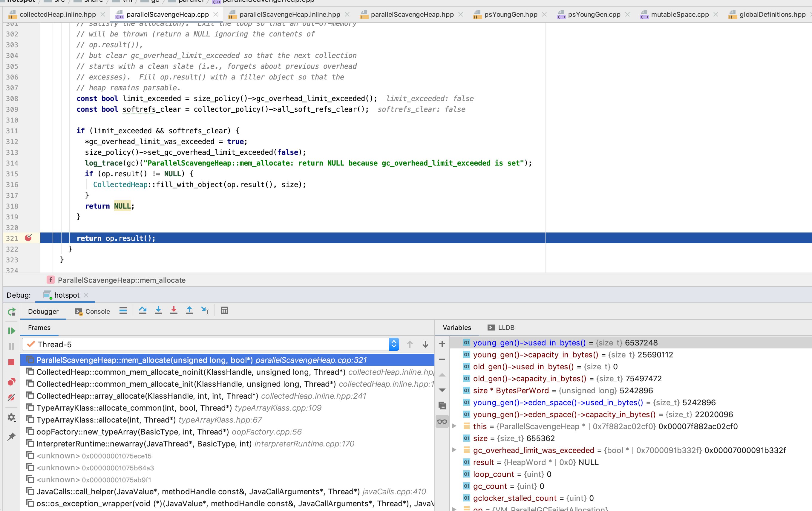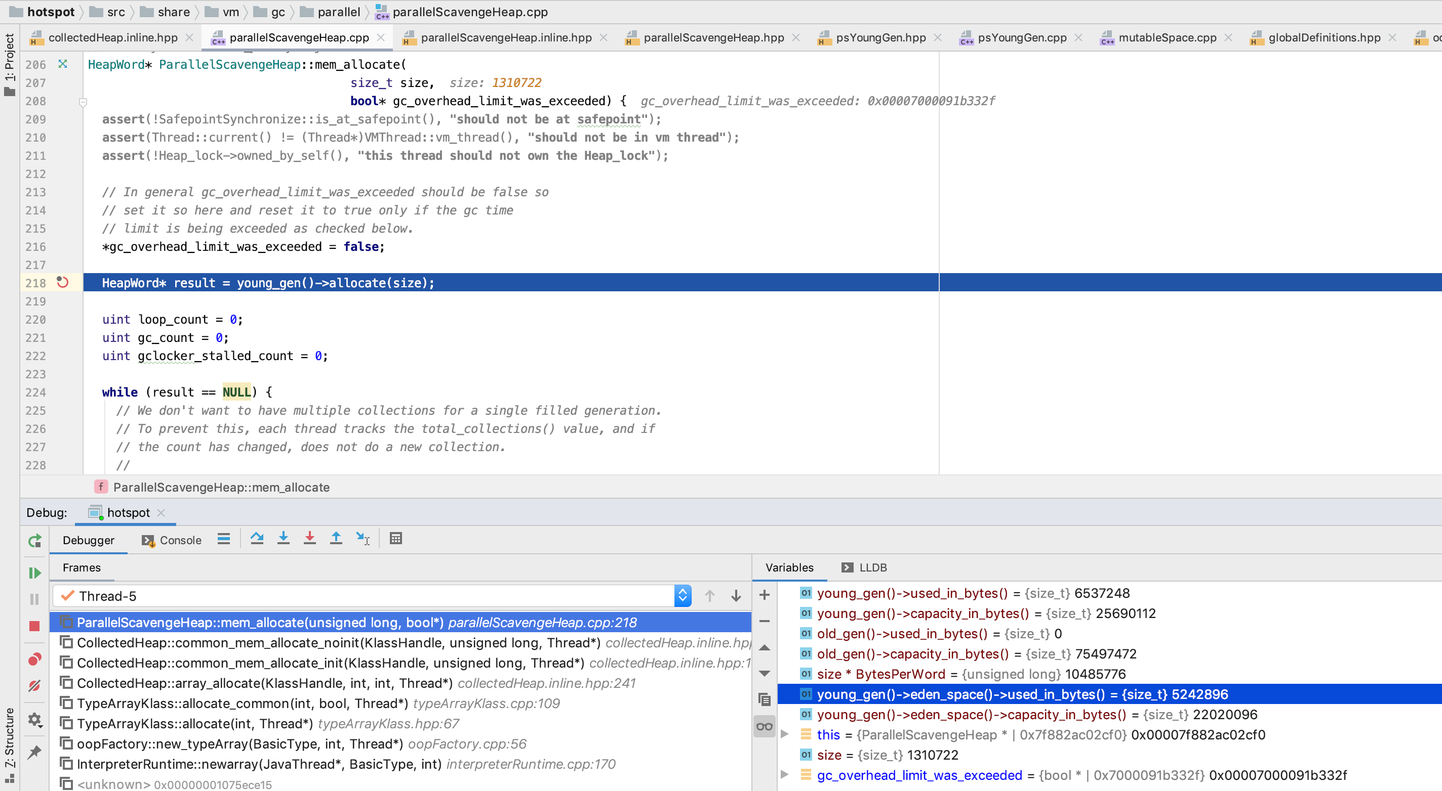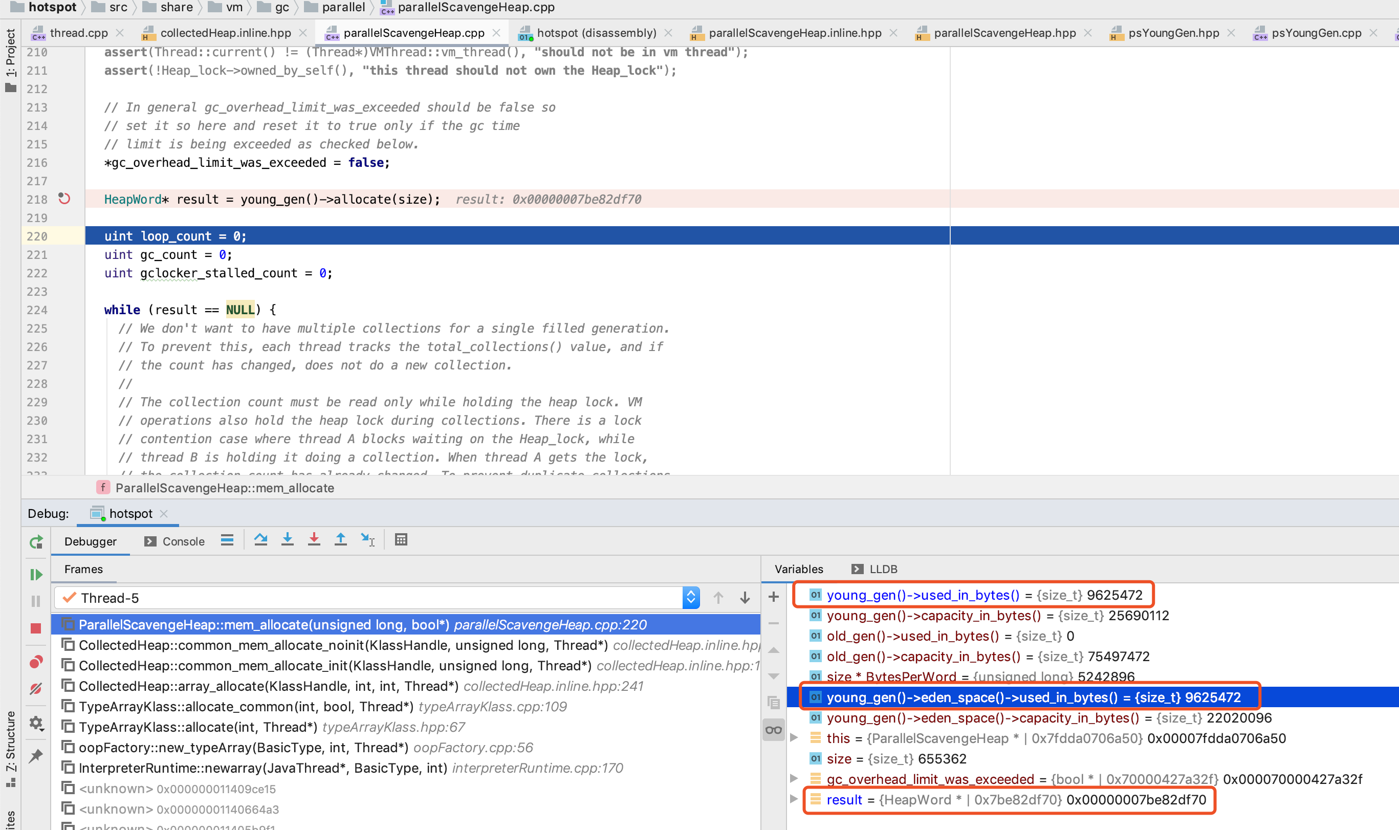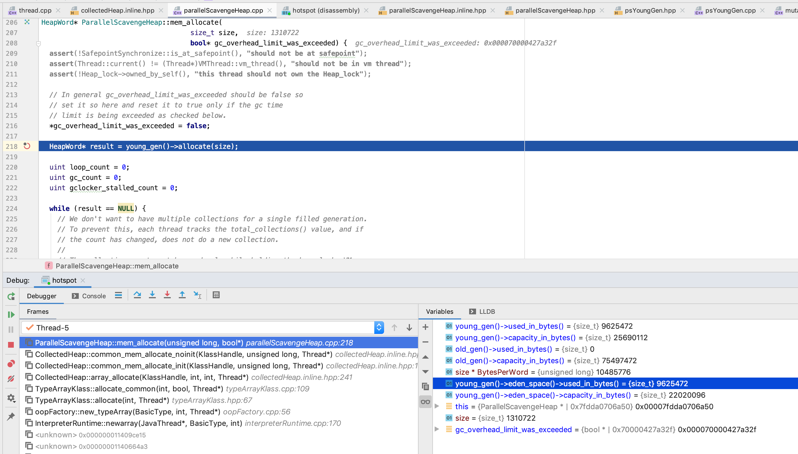 我们这里 size 是 1966082, eden_space.capacity_in_words/2 为 1376256, 是符合 在 old_gen 分配的条件的, 因此 这里第五个 字节数组 就在 old_gen 分配了