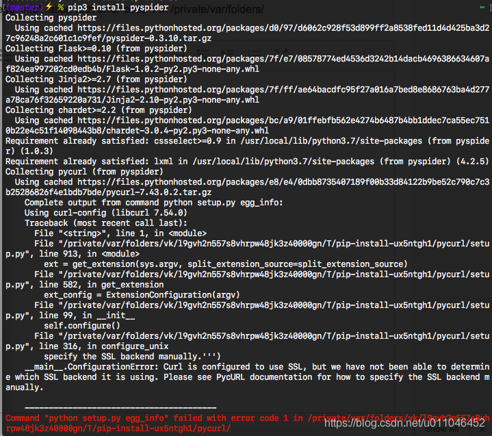 这篇关于Mac下安装pyspider报了Command python setup.py egg_info failed with error code 1 in /private/var/folders/的文章就介绍到这儿,希望我们推荐的文章对编程师们有所帮助!
