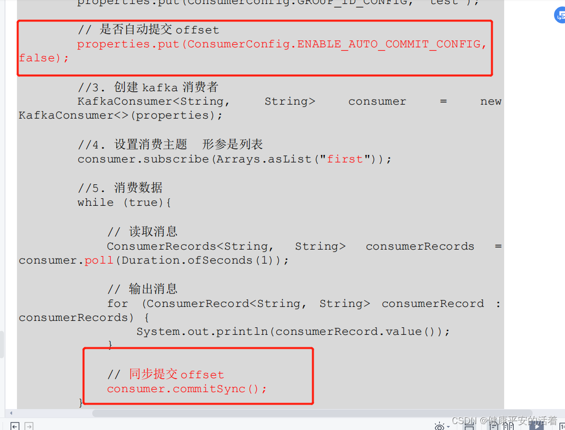 虽然自动提交 offset 十分简单便利,但由于其是基于时间提交的,开发人员难以把握 offset 提交的时机。因 此Kafka 还提供了手动提交 offset 的 API 。