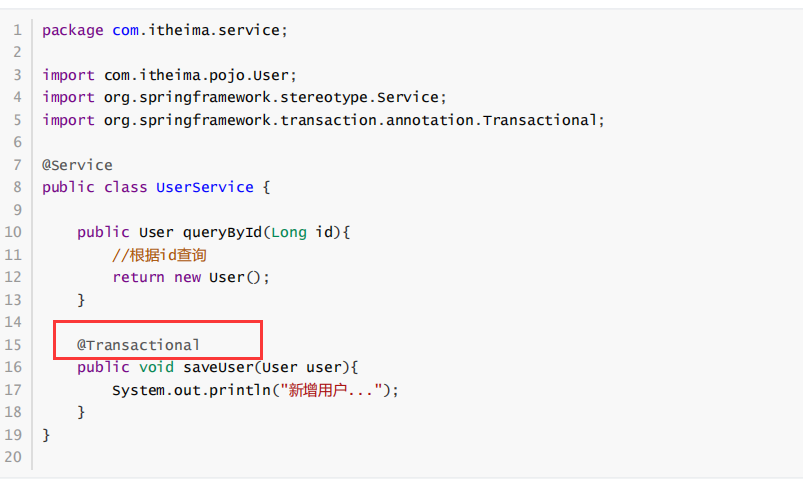3.至于事务,SpringBoot中通过注解来控制。就是我们熟知的 @Transactional 使用的时候设置在对应的类或方法上 即可。