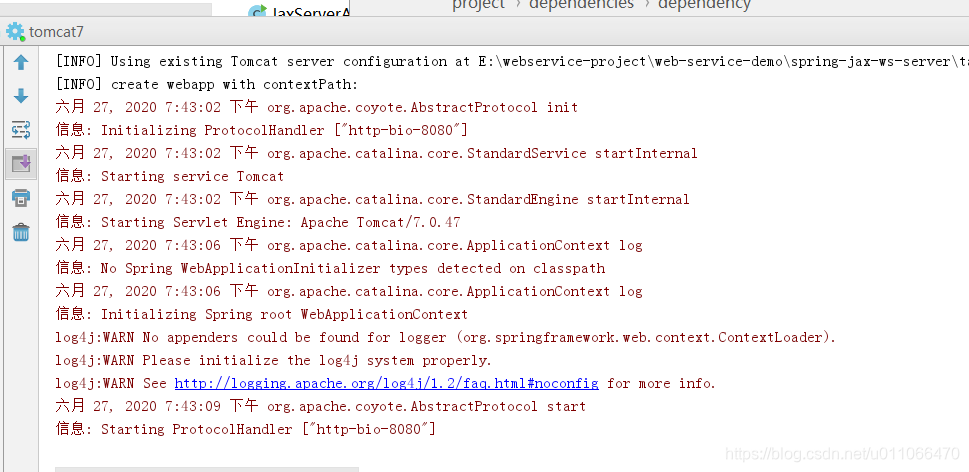 背景说明:在做spring和apache cxf整合实现webservice的服务端时,启动程序报: