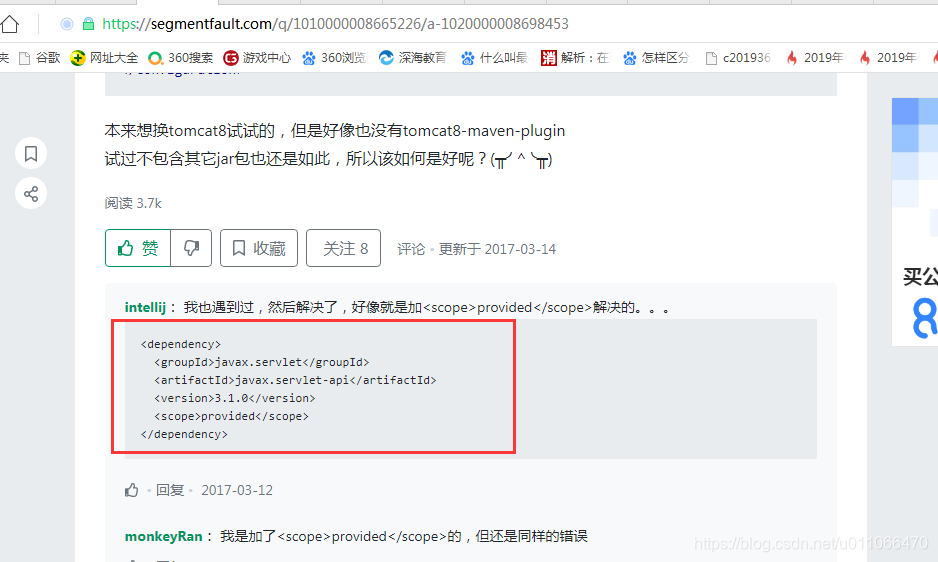 查阅了一下午,说是java.servlertapi.jar包冲突,加入下面的依赖得以解决:
