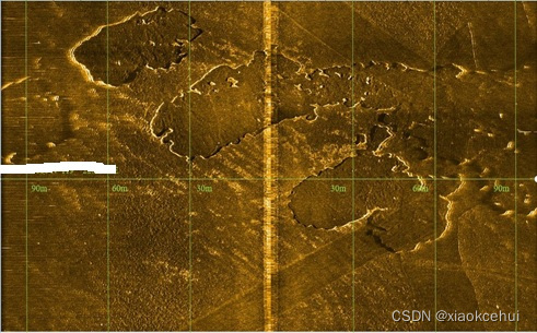 陷洼地内部海底形态与周围原状海底有显著的不同,一般情况下洼地四周边缘界线清楚,内部海底平坦,无特别构造,在声纳图像上为一均匀的灰色或灰白色,见图4-3,浅地层剖面记录显示塌陷洼地下面有无序扰动,深度可达2m;但在少量塌陷洼地海底也可以看到粗糙的海底结构,海底为一片杂乱的小丘或小脊,在侧扫声纳记录上呈现为不规则的明暗相间的图像,在浅地层剖面上一般看不到较深的无序扰动层,仅见致密的薄层底层。同时,众多的小型塌陷洼地可相互结合在一起,形成一定规模的塌陷洼地群。