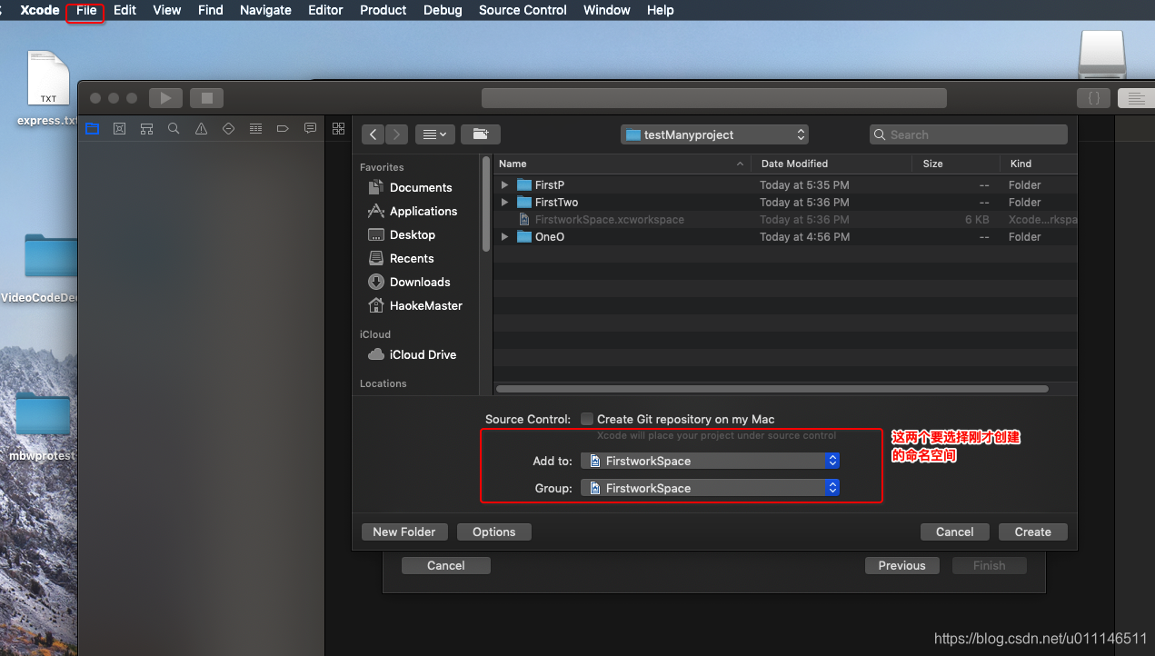 1.打开XCODE,菜单栏-》file-〉new-》workspace,创建workspace;