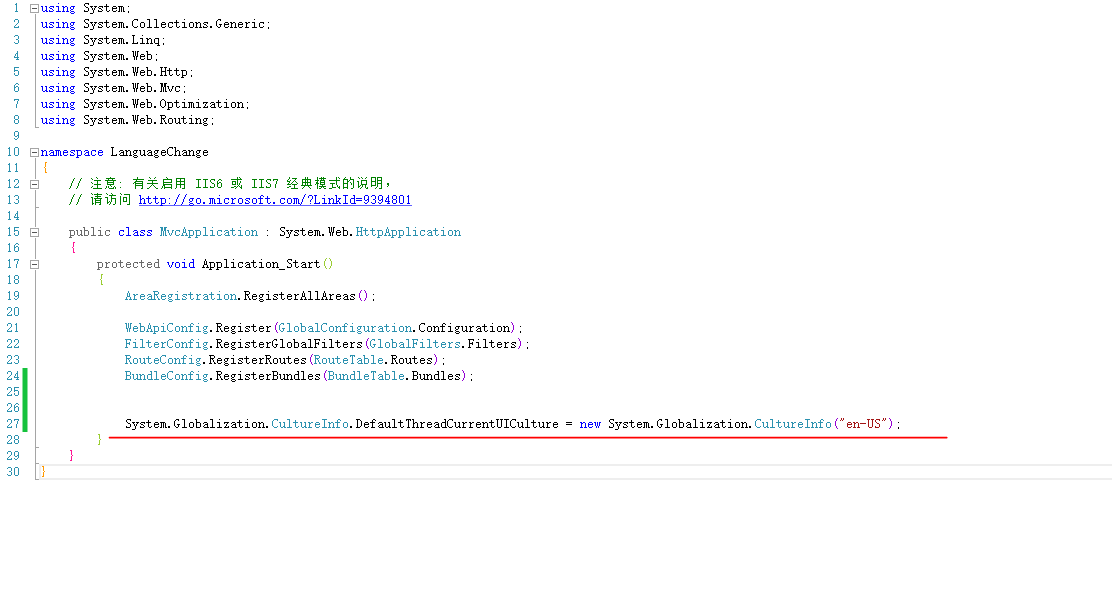 还需要在Global.asax中设置默认打开时的语言: